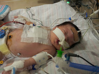 I then started to have blocked premature arterial contractions and some bradycardia (slow heart beats). I had pacing wires inserted to help with this. The Dr. Pizarro broke my parent's hearts when he explained I would not survive the Norwood and would have to get a complete heart transplant. He said all the issues I was having with my heart he had never seen in a HLHS baby and my case was about 1 in 700,000. Mommy and Daddy didn't realize how strong I was just yet because they cried and started to prepare for the worst. A heart transplant was something that they had never expected. I was listed as a 1A on 12/3/12 at 5:12pm. My mommy cried a lot in the next week. She apologized every time she saw me. She told me she wished she could take my place. Everyone in my family told me that.